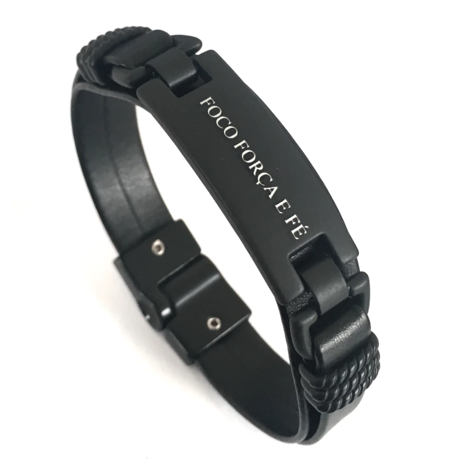 Pulseira de Couro Foco, Força e Fé.